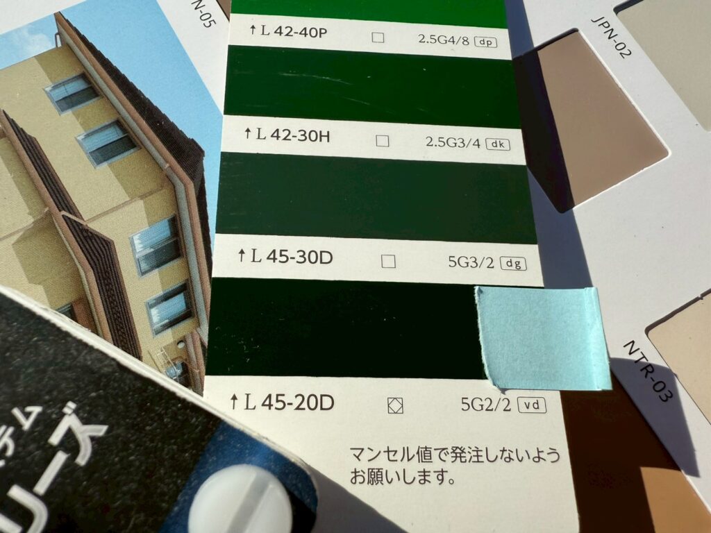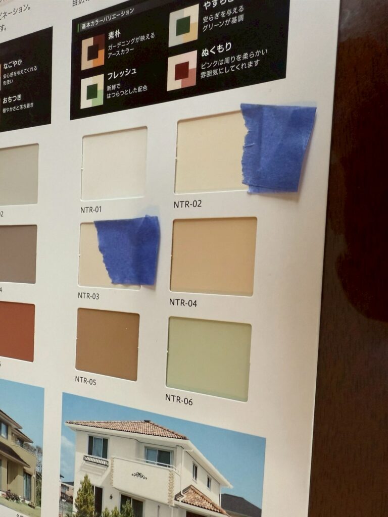 塗装をする上でお施主様が納得のいく色を選ぶのはとても重要です。ペイントメンテでは色見本を用いて、お施主様が気に入ったカラーをお打ち合わせで選んでいただいています。